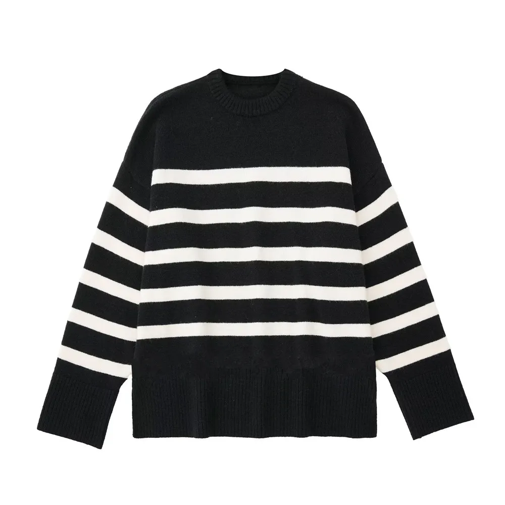 Autumn Winter Basic Sweater Women Long Sleeve O-Neck Pullovers Oversized Loose Striped Casual Jumper Tops Women 2025 New SweaterAutumn Winter Basic Sweater Women Long Sleeve O-Neck Pullovers Oversized Loose Striped Casual Jumper Tops Women 2025 New Sweater